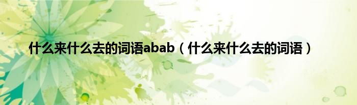 本文,什么来什么去的词语abab,什么来什么去的词语到此就分享完毕,希望对大家有所帮助。