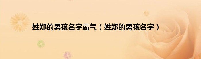 大家好,小问来为大家解答以上问题。姓郑的男孩名字霸气,姓郑的男孩名字这个很多人还不知道,现在让我们一起来看看吧!