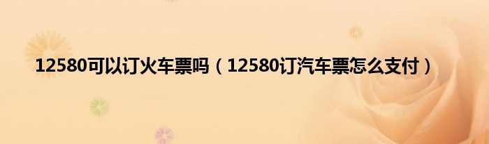 本文,12580可以订火车票吗,12580订汽车票怎么支付到此就分享完毕,希望对大家有所帮助。