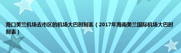 本文,海口美兰机场去市区的机场大巴时刻表,2017年海南美兰国际机场大巴时刻表到此就分享完毕,希望对大家有所帮助。