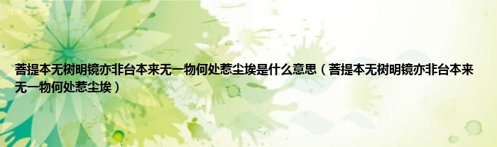 大家好,小问来为大家解答以上问题。菩提本无树明镜亦非台本来无一物何处惹尘埃是什么意思,菩提本无树明镜亦非台本来无一物何处惹尘埃这个很多人还不知道,现在让我们一起来看看吧!