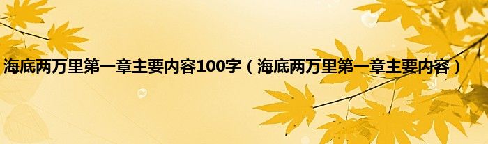 大家好,小问来为大家解答以上问题。海底两万里第一章主要内容100字,海底两万里第一章主要内容这个很多人还不知道,现在让我们一起来看看吧!
