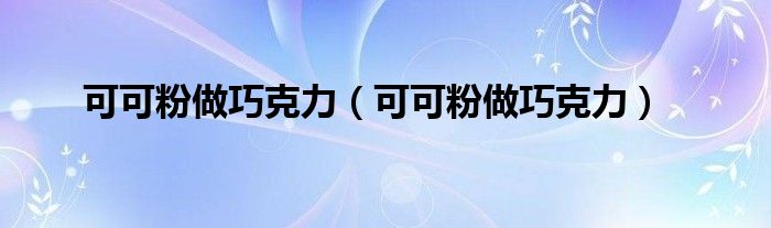 以上就是【可可粉做巧克力,可可粉做巧克力】相关内容。