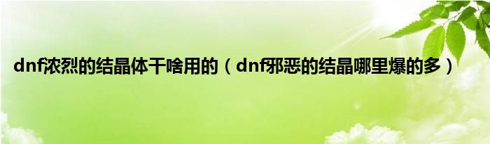 dnf浓烈的结晶体干啥用的(dnf邪恶的结晶哪里爆的多)