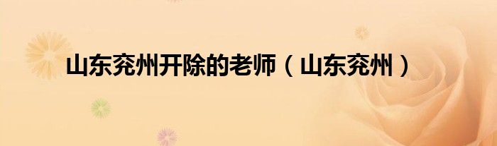 以上就是【山东兖州开除的老师,山东兖州】相关内容。