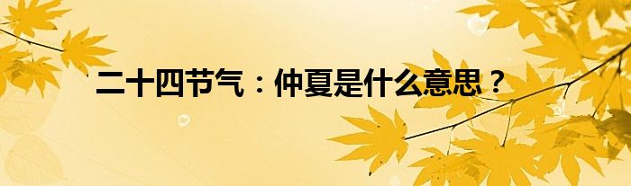 大家好,综合小编来为大家讲解下。二十四节气:仲夏是什么意思?这个很多人还不知道,现在让我们一起来看看吧!