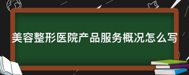 最佳答案美容整形医院产品服务概况可以写脸部护理、身体护理、中医美容、绣眉等。美容医院是2015年经全国科学技术名词审定委员会审定发布的医学美学与美容医学名词。开展医疗美容业务的美容专科性医院。要求机构内设置医疗美容咨询室、美容外科、美容皮肤科、美容牙科、美容治疗室、美容中医科、理化美容室...