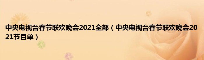 大家好,综合小编来为大家讲解下。中央电视台春节联欢晚会2021全部,中央电视台春节联欢晚会2021节目单这个很多人还不知道,现在让我们一起来看看吧!