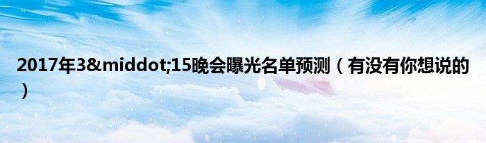 本文2017年3·15晚会曝光名单预测,有没有你想说的到此分享完毕,希望对大家有所帮助。