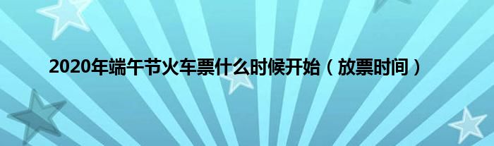 大家好,综合小编来为大家讲解下。2020年端午节火车票什么时候开始,放票时间这个很多人还不知道,现在让我们一起来看看吧!