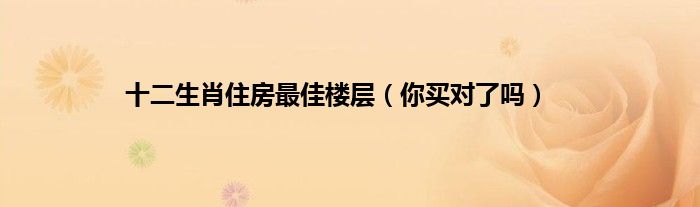 大家好,综合小编来为大家讲解下。十二生肖住房最佳楼层,你买对了吗这个很多人还不知道,现在让我们一起来看看吧!