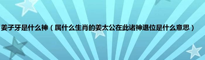 大家好,综合小编来为大家讲解下。姜子牙是什么神,属什么生肖的姜太公在此诸神退位是什么意思这个很多人还不知道,现在让我们一起来看看吧!