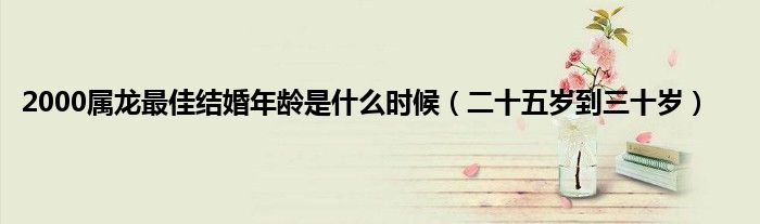 大家好,综合小编来为大家讲解下。2000属龙最佳结婚年龄是什么时候,二十五岁到三十岁这个很多人还不知道,现在让我们一起来看看吧!
