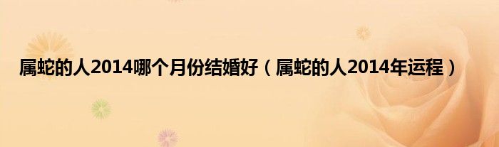 本文属蛇的人2014哪个月份结婚好,属蛇的人2014年运程到此分享完毕,希望对大家有所帮助。