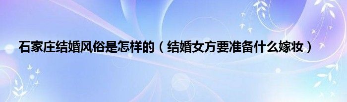 大家好,综合小编来为大家讲解下。石家庄结婚风俗是怎样的,结婚女方要准备什么嫁妆这个很多人还不知道,现在让我们一起来看看吧!