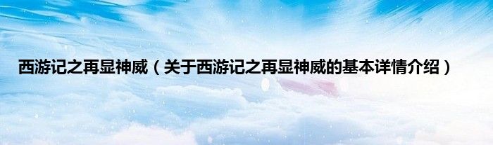 西游记之再显神威(关于西游记之再显神威的基本详情介绍)