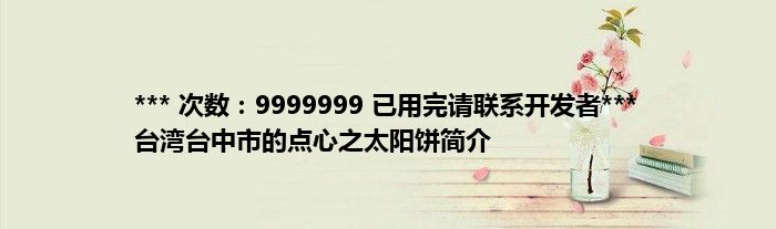 *** 次数:9999999 已用完请联系开发者*** 台湾台中市的点心之太阳饼简介