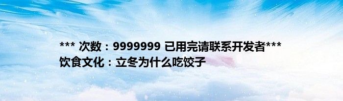 大家好,综合小编来为大家讲解下。*** 次数:9999999 已用完请联系开发者*** 饮食文化:立冬为什么吃饺子这个很多人还不知道,现在让我们一起来看看吧!