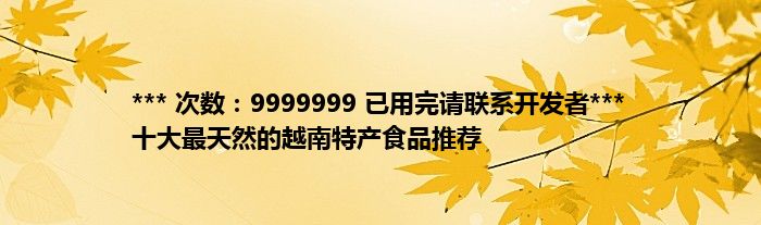 本文*** 次数:9999999 已用完请联系开发者*** 十大最天然的越南特产食品推荐到此分享完毕,希望对大家有所帮助。