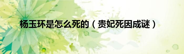 大家好,综合小编来为大家讲解下。杨玉环是怎么死的,贵妃死因成谜这个很多人还不知道,现在让我们一起来看看吧!