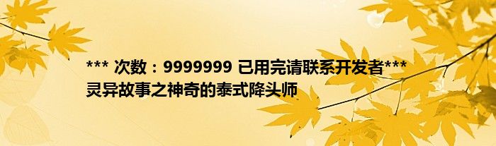 本文*** 次数:9999999 已用完请联系开发者*** 灵异故事之神奇的泰式降头师到此分享完毕,希望对大家有所帮助。
