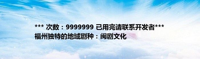 本文*** 次数:9999999 已用完请联系开发者*** 福州独特的地域剧种:闽剧文化到此分享完毕,希望对大家有所帮助。