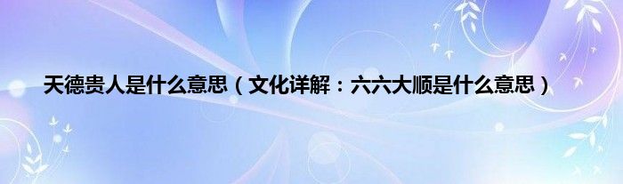 大家好,综合小编来为大家讲解下。天德贵人是什么意思,文化详解:六六大顺是什么意思这个很多人还不知道,现在让我们一起来看看吧!