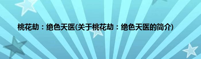 大家好,桃花劫:绝色天医,关于桃花劫:绝色天医的简介很多人还不知道,现在让我们一起来看看吧!