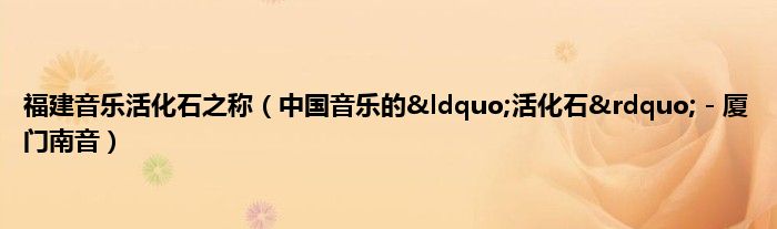 本文福建音乐活化石之称,中国音乐的“活化石”-厦门南音到此分享完毕,希望对大家有所帮助。