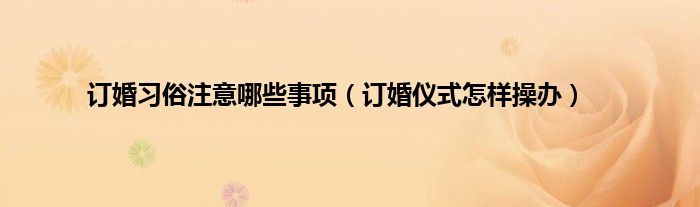 大家好,综合小编来为大家讲解下。订婚习俗注意哪些事项,订婚仪式怎样操办这个很多人还不知道,现在让我们一起来看看吧!