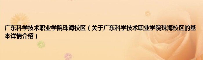 本文关于广东科学技术职业学院珠海校区的基本详情介绍就讲解完毕,希望对大家有所帮助。