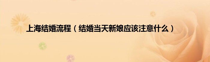 大家好,综合小编来为大家讲解下。上海结婚流程,结婚当天新娘应该注意什么这个很多人还不知道,现在让我们一起来看看吧!