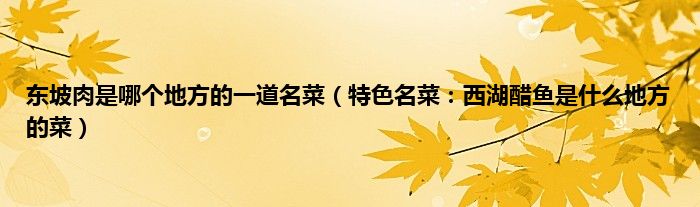 本文东坡肉是哪个地方的一道名菜,特色名菜:西湖醋鱼是什么地方的菜到此分享完毕,希望对大家有所帮助。