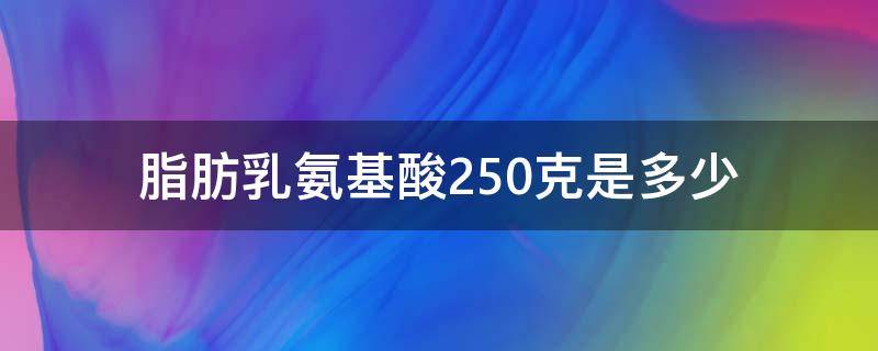 脂肪乳氨基酸250克是250毫升。脂肪乳氨基酸(18)注射液,是一种化学药品。氨基酸,是含有碱性氨基和酸性羧基的有机化合物。羧酸碳原子上的氢原子被氨基取代后形成的化合物。经蛋白质水解后得到的氨基酸都是阿尔法-氨基酸,而且仅有二十二种,包括甘氨酸、丙氨酸、缬氨酸、亮氨酸、异亮氨酸、甲硫氨酸(蛋氨酸)、脯氨酸、色氨酸、丝氨酸、酪氨酸、半胱氨酸、苯丙氨酸、天门冬酰胺、谷氨酰胺、苏氨酸、天冬氨酸、谷氨酸、赖氨酸、精氨酸、组氨酸、硒半胱氨酸和吡咯赖氨酸(仅在少数细菌中发现),它们是构成蛋白质的基本单位。