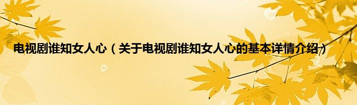 本文关于电视剧谁知女人心的基本详情介绍就讲解完毕,希望对大家有所帮助。