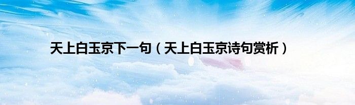 欢迎观看本篇文章,小升来为大家解答以上问题。天上白玉京下一句,天上白玉京诗句赏析很多人还不知道,现在让我们一起来看看吧!