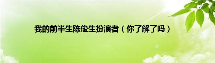 欢迎观看本篇文章,小升来为大家解答以上问题。我的前半生陈俊生扮演者,你了解了吗很多人还不知道,现在让我们一起来看看吧!