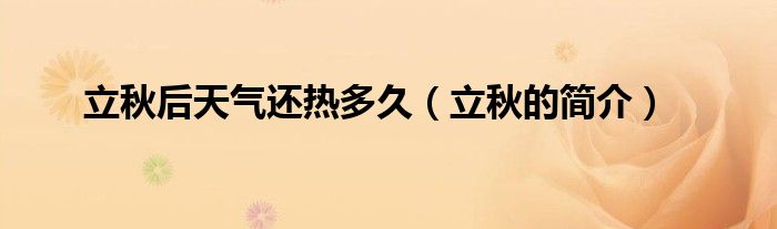 欢迎观看本篇文章,小升来为大家解答以上问题。立秋后天气还热多久,立秋的简介很多人还不知道,现在让我们一起来看看吧!