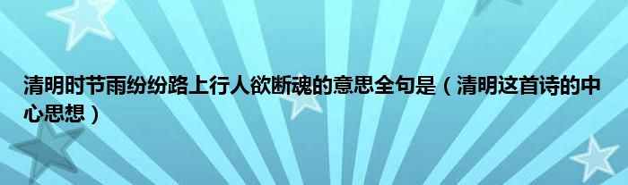 欢迎观看本篇文章,小升来为大家解答以上问题。清明时节雨纷纷路上行人欲断魂的意思全句是,清明这首诗的中心思想很多人还不知道,现在让我们一起来看看吧!