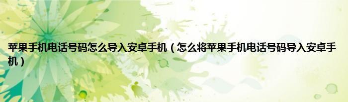 苹果手机电话号码怎么导入安卓手机(怎么将苹果手机电话号码导入安卓手机)