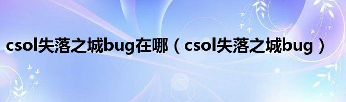 大家好,小问来为大家解答以上问题。csol失落之城bug在哪,csol失落之城bug这个很多人还不知道,现在让我们一起来看看吧!