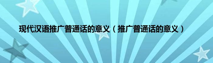 以上就是【现代汉语推广普通话的意义,推广普通话的意义】相关内容。