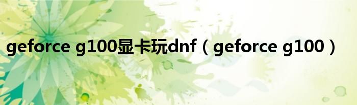 以上就是【geforce g100显卡玩dnf,geforce g100】相关内容。