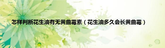 大家好,综合小编来为大家讲解下怎样判断花生油有无黄曲霉素,花生油多久会长黄曲霉这个很多人还不知道,现在让我们一起来看看吧!