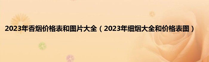 1、对于一些经常抽烟的朋友来说,对香烟品牌和价格都是比较清楚的,而对于一些抽烟比较少的朋友来说,就比较陌生了,市面上香烟品牌是比较多的,价格也是不同的,很多朋友可能不是了解的太清楚。下面给大家详细介绍2023年香烟价格表和图片大全,2023年细烟大全和价格表图。
