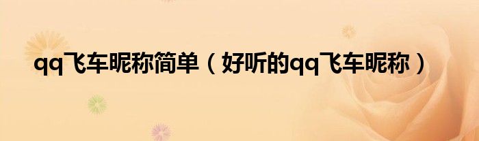 以上就是【qq飞车昵称简单,好听的qq飞车昵称】相关内容。