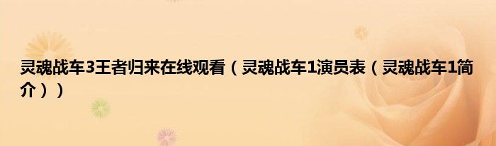大家好,综合小编来为大家讲解下灵魂战车3王者归来在线观看,灵魂战车1演员表,灵魂战车1简介这个很多人还不知道,现在让我们一起来看看吧!
