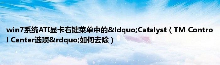 大家好,综合小编来为大家讲解下win7系统ATI显卡右键菜单中的“Catalyst,TM Control Center选项”如何去除这个很多人还不知道,现在让我们一起来看看吧!
