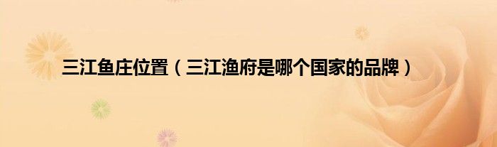大家好,综合小编来为大家讲解下三江鱼庄位置,三江渔府是哪个国家的品牌这个很多人还不知道,现在让我们一起来看看吧!