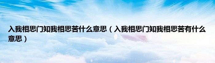 欢迎观看本篇文章,小升来为大家解答以上问题。入我相思门知我相思苦什么意思,入我相思门知我相思苦有什么意思很多人还不知道,现在让我们一起来看看吧!
